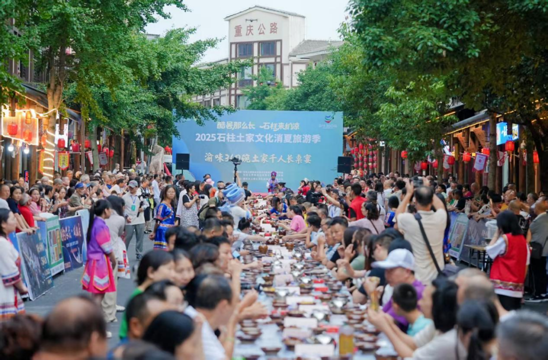 第1眼TV-華龍網(wǎng)訊(曹先旺)如果說清涼是黃水國家級旅游度假區(qū)的底色,那美食便是點亮這片山野的煙火氣。7-8月,作為“2025石柱土家文化消夏旅游季”的標志性活動之一的千人長桌宴再度盛大登場,在黃水土家風情街擺起長龍宴席,將土家人的熱情與滋味一碗碗端上桌。