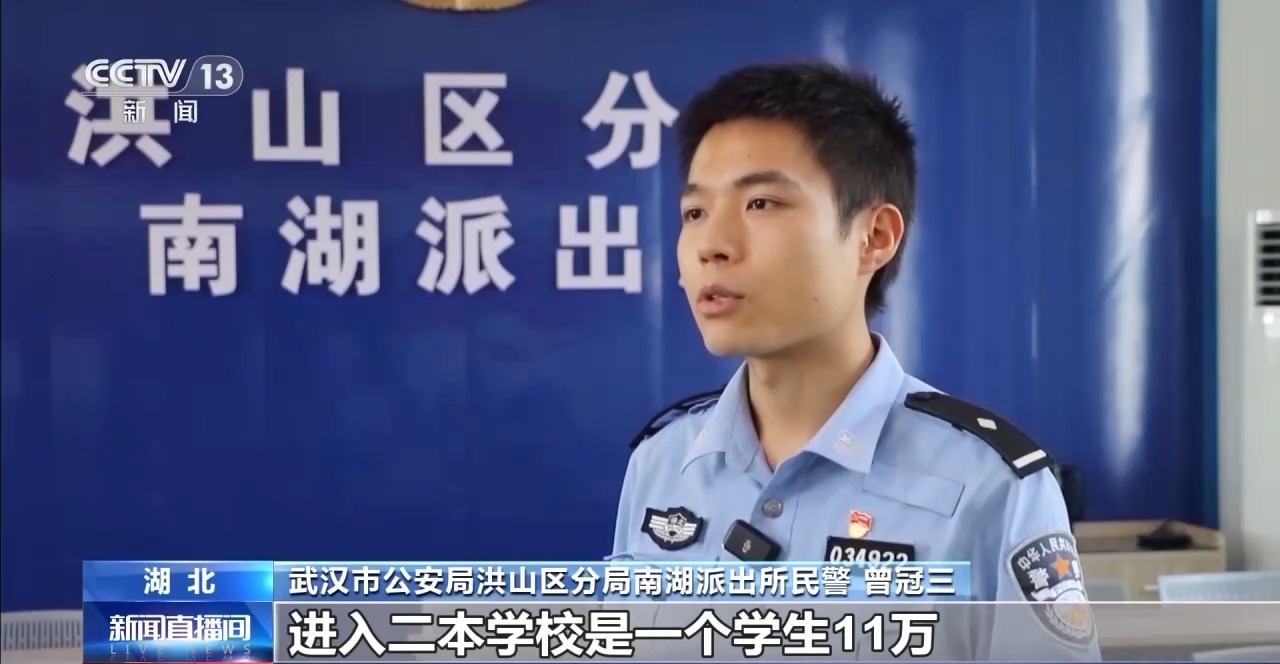 武漢市公安局洪山區(qū)分局南湖派出所民警 曾冠三:(嫌疑人)說可以把學(xué)生通過國際生的方式,置換到國內(nèi)高校。以統(tǒng)招生身份入學(xué),畢業(yè)后可以拿到學(xué)位證(和)學(xué)歷證。