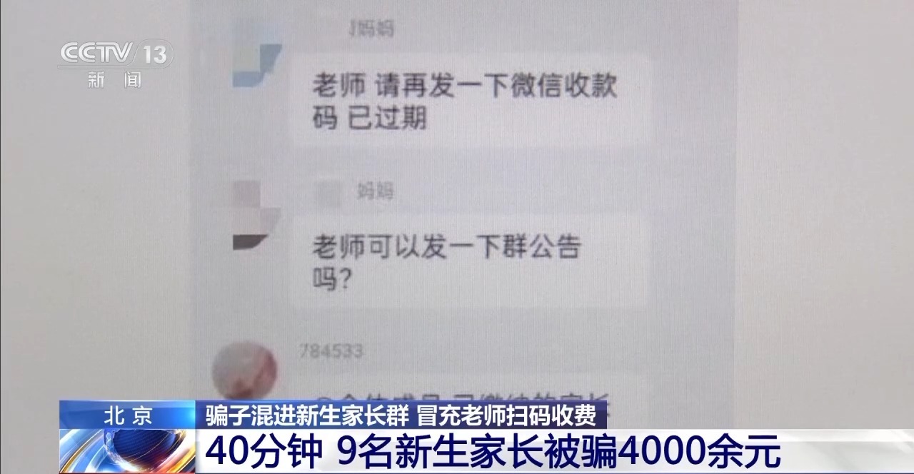 北京:騙子混進(jìn)新生家長群 冒充老師掃碼收費(fèi)