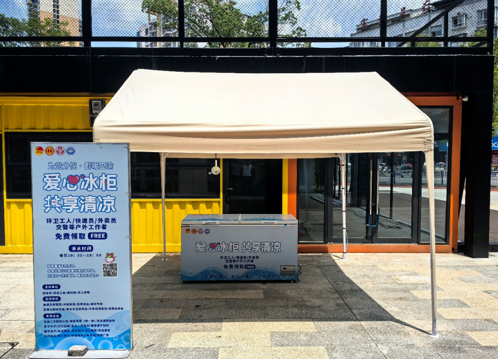 近日,由共青團秀山縣委聯(lián)合縣總工會、秀山縣婦聯(lián)等單位共同發(fā)起的“愛心冰柜”項目正式啟動,向快遞員、外賣騎手、環(huán)衛(wèi)工人等戶外勞動者提供免費的清涼飲品,用實實在在的關懷為高溫中的堅守者撐起“清涼綠蔭”。