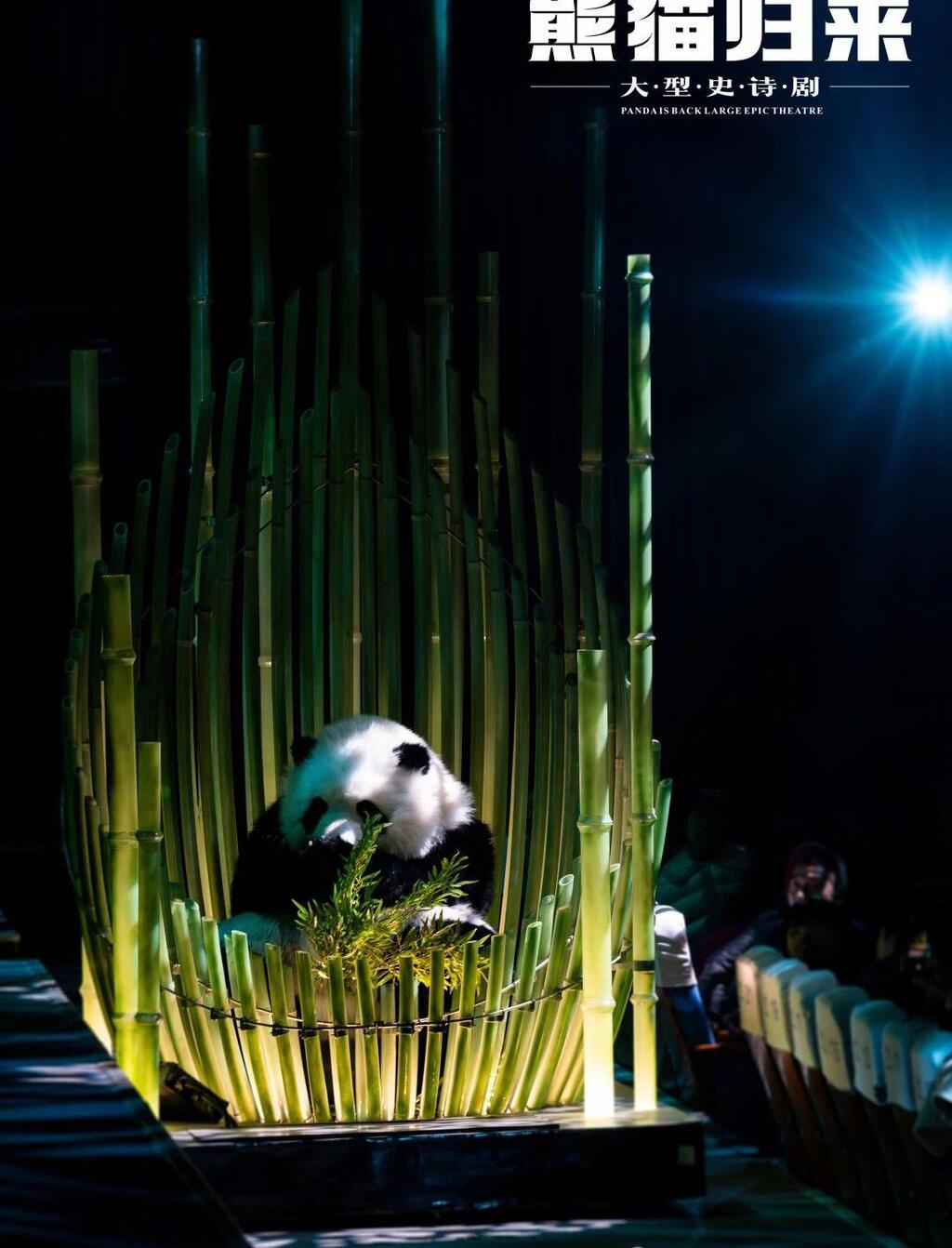 羅女士口中的《熊貓歸來(lái)》,在1869中國(guó)大熊貓生態(tài)世界演藝中心上演,1500平的熊貓光影空間里,30臺(tái)3萬(wàn)流明激光機(jī)、10倍IMAX巨幕,以及國(guó)內(nèi)最大的2800㎡升降魔幻舞臺(tái),夜晚“沉浸式”觀劇體驗(yàn)拉滿。