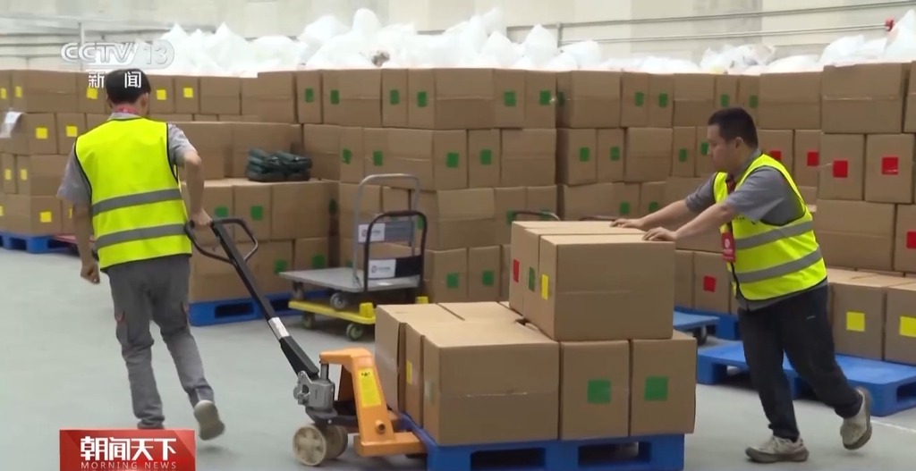 總臺(tái)記者王勝東:在觀禮人員服務(wù)包的存儲(chǔ)倉(cāng)庫(kù),這些服務(wù)包已經(jīng)被裝載完畢,靜待發(fā)車。先來(lái)了解一下服務(wù)包的外部設(shè)計(jì)特點(diǎn)和使用功能。它上面有一個(gè)小口袋,可以裝風(fēng)油精和紙巾,下面還有一個(gè)小口袋,可以裝背包袋,旁邊的網(wǎng)兜,可以裝水瓶或者水壺。它能夠基本滿足廣場(chǎng)上觀禮群眾當(dāng)天的保障需求,而這三個(gè)小口袋就構(gòu)成了“80”字樣,契合今年抗戰(zhàn)勝利80周年的主題。服務(wù)包一共劃分為三個(gè)顏色,分別是城墻紅、豐饒金和橄欖綠,它們與廣場(chǎng)上座椅的顏色是一一對(duì)應(yīng)的,也就是說(shuō)您在廣場(chǎng)上處于不同的觀禮位置,就會(huì)得到不同顏色的服務(wù)包。