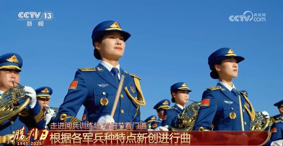 演奏的樂(lè)曲方面,除了《松花江上》、《太行山上》、《保衛(wèi)黃河》等經(jīng)典曲目,還有為本次閱兵量身打造的新作品,特別是在裝備方隊(duì)和空中梯隊(duì)通過(guò)時(shí),您將聽(tīng)到根據(jù)各軍兵種特點(diǎn),針對(duì)性新創(chuàng)的進(jìn)行曲。