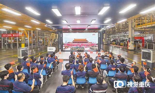 9月3日,長安汽車兩江工廠,企業(yè)職工共同收看直播。記者 鄭宇 攝/視覺重慶