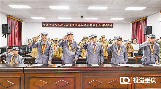 九月三日,重慶警備區(qū)渝中第三離休所,抗戰(zhàn)老戰(zhàn)士們在收看直播時紛紛起身敬禮。首席記者 龍帆 攝\視覺重慶