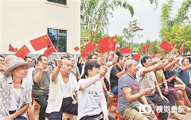 9月3日,潼南區(qū)雙江鎮(zhèn)仙鵝社區(qū),村社干部和群眾一起收看直播。通訊員 何媛 攝/視覺重慶