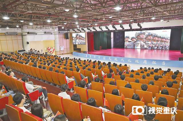 九月三日,西南大學(xué)圓頂報告廳,師生們在收看直播。記者 張春曉 攝\視覺重慶