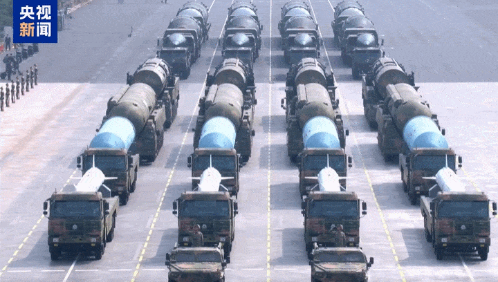 核導(dǎo)彈第一方隊(duì),受閱的驚雷-1空基遠(yuǎn)程導(dǎo)彈、巨浪-3潛射洲際導(dǎo)彈、東風(fēng)-61陸基洲際導(dǎo)彈、東風(fēng)-31新型陸基洲際導(dǎo)彈,首次集中展示我軍陸海空基“三位一體”戰(zhàn)略核力量,是維護(hù)國家主權(quán)、捍衛(wèi)民族尊嚴(yán)的戰(zhàn)略王牌。