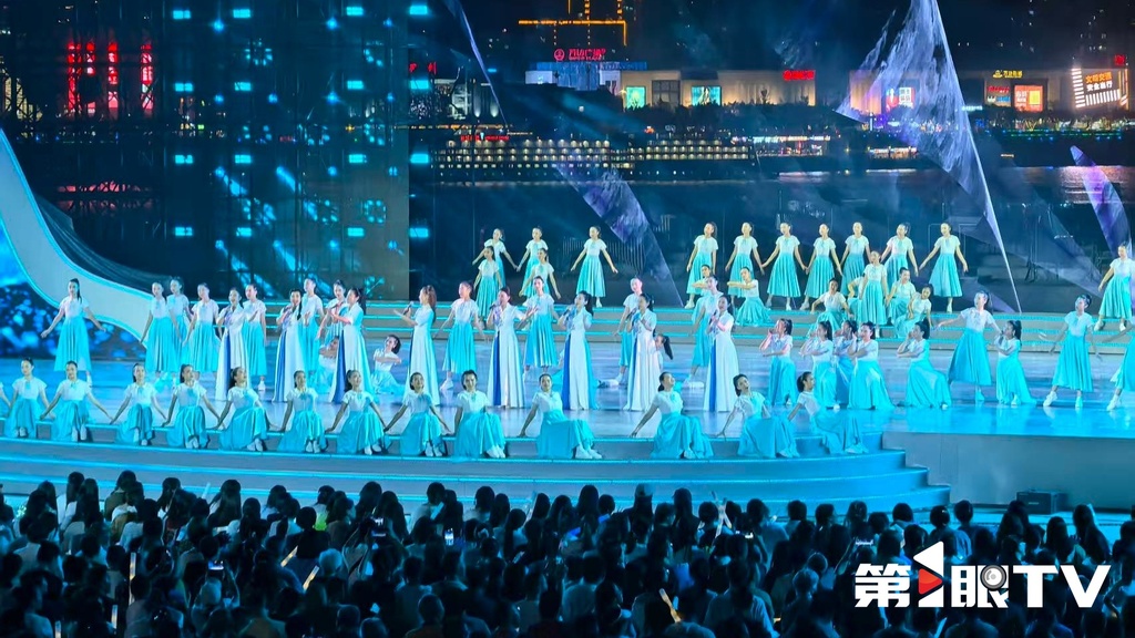 整場演出分為“河合共生·星漢燦爛”“浪潮之極·民族覺醒”和“江河共濟·未來交響”三大篇章,融合歌舞、川劇、交響樂、雜技與現代科技等多種藝術形式。舞臺設計充分利用江畔空間優(yōu)勢,廣場燈光與江面水影相互輝映,觀眾區(qū)與互動環(huán)節(jié)緊密結合,讓市民在沉浸體驗中感受“城市即劇場”的獨特魅力。