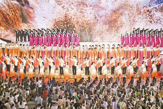 其中,世界大河歌會(huì)在萬州舉行。其臨江而建的舞臺(tái),巧妙地將自然景觀與人文創(chuàng)造融為一體,虛實(shí)相生,動(dòng)靜交織,構(gòu)建出一幅美輪美奐的平湖夜畫?!俺两交?dòng)+國際化表達(dá)”的歌會(huì)特色,帶來“景隨人動(dòng)、人在畫中”的深度沉浸體驗(yàn),讓與會(huì)嘉賓開啟了一段跨越時(shí)空的江河之旅。