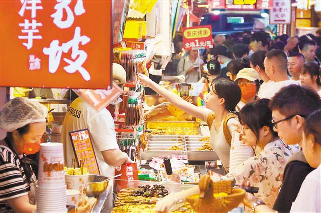 據(jù)了解,各大核心商圈均攜手重點(diǎn)餐飲企業(yè)推出“渝味360碗”主題套餐和多項(xiàng)滿減優(yōu)惠,配套開展非遺小吃等互動體驗(yàn)。