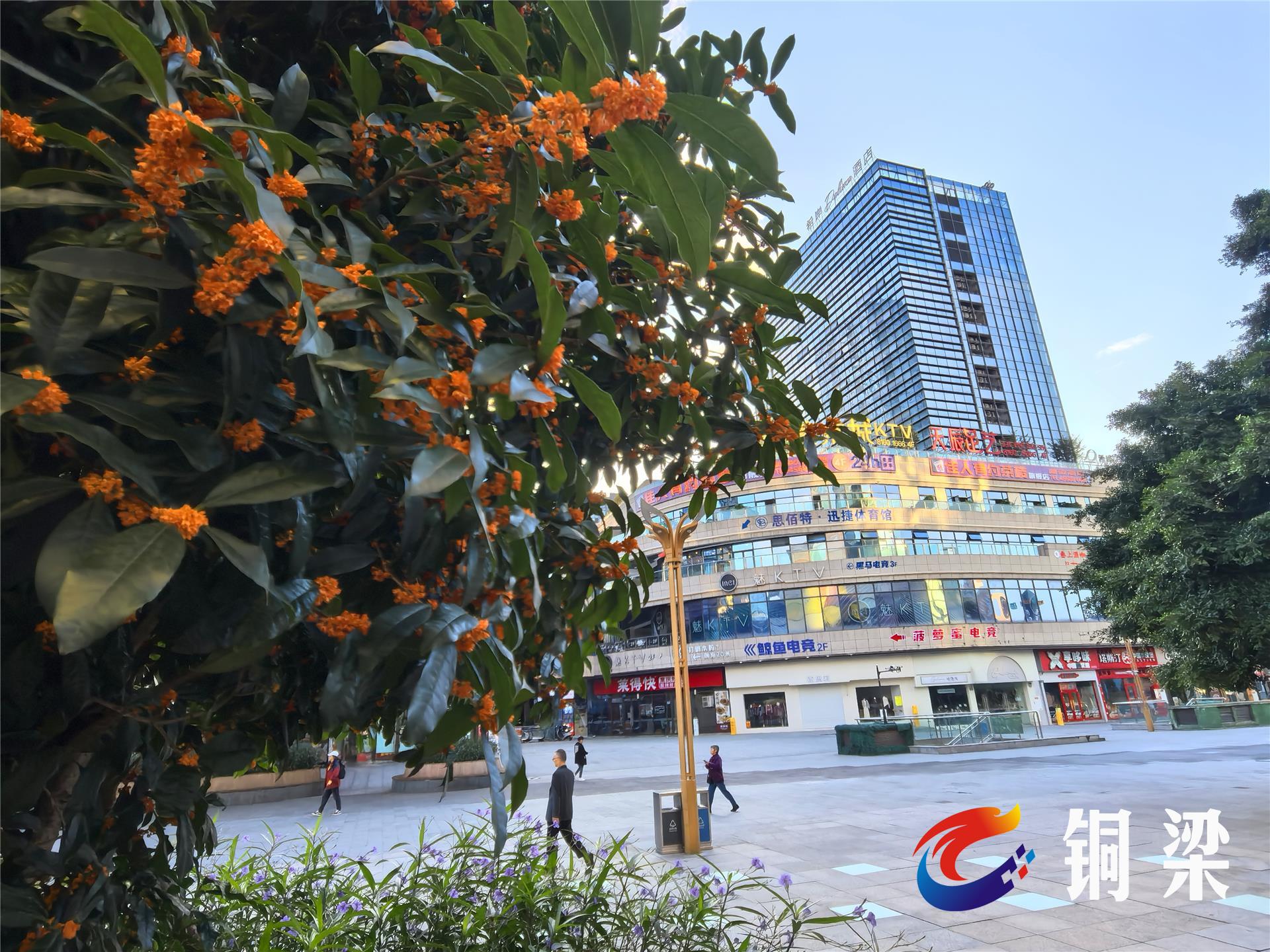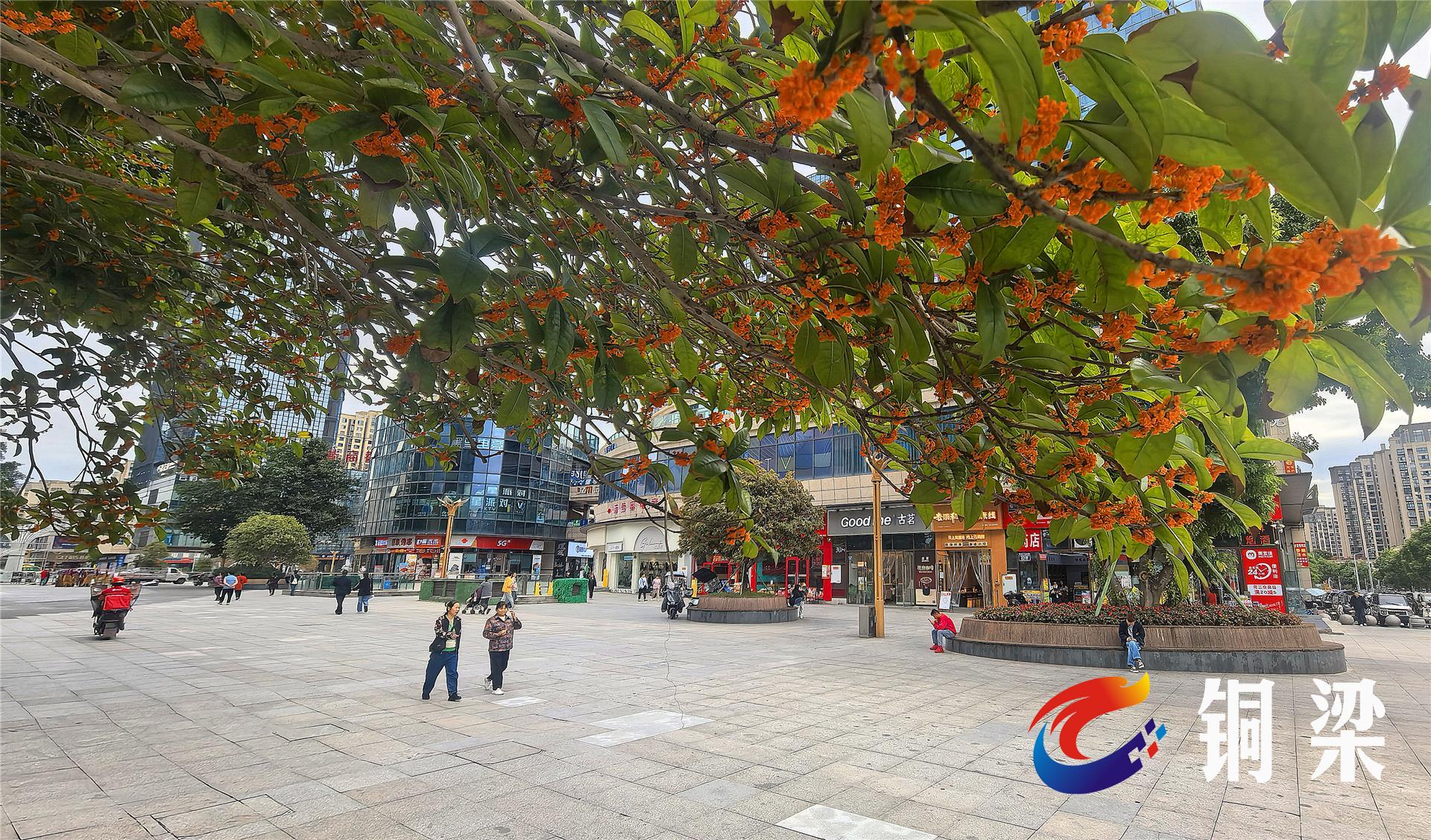 秋風送爽,金桂飄香,銅梁龍城天街廣場的金桂迎來了第二波花開。漫步廣場,空氣中彌漫著濃郁的桂花香,讓人心曠神怡。微風拂過,桂花飄落如雨,仿佛秋日精靈在空氣中輕盈舞動,帶來無盡的詩意。